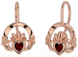 Garnet Rose Gold Silver Claddagh Celtic Trinity Knot Dangle Earrings