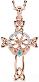 Diamond Topaz Rose Gold Silver Claddagh Celtic Cross Necklace