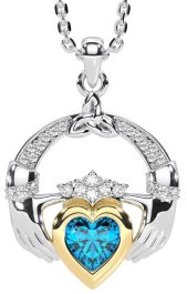 Diamond Topaz Gold Silver Claddagh Trinity knot Necklace