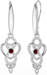 Diamond Garnet Silver Infinity Celtic Trinity Knot Dangle Earrings