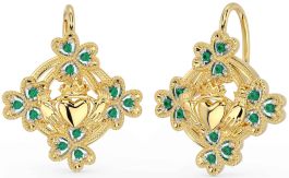 Diamond Gold Silver Claddagh Shamrock Dangle Earrings