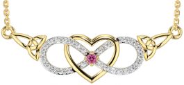 Diamond Pink Tourmaline Gold Celtic Infinity Heart Trinity Knot Necklace