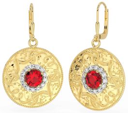 Diamond Ruby Gold Celtic Warrior Dangle Earrings