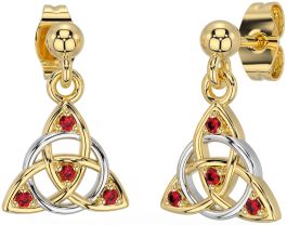 Diamond Ruby Gold Silver Celtic Trinity Knot Dangle Earrings
