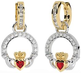 Diamond Ruby Gold Silver Claddagh Dangle Earrings
