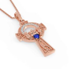 Diamond Sapphire Rose Gold Silver Claddagh Celtic Cross Necklace