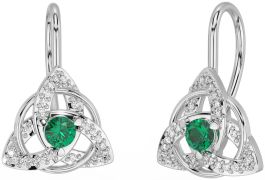 Diamond Emerald Silver Celtic Trinity Knot Stud Earrings