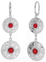 Diamond Ruby Silver Celtic Warrior Dangle Earrings