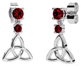 Garnet Silver Celtic Trinity Knot Dangle Earrings