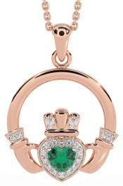 Diamond Emerald Rose Gold Silver Claddagh Necklace