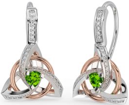 Diamond Peridot Rose Gold Silver Celtic Trinity Knot Dangle Earrings