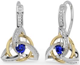 Diamond Sapphire Gold Silver Celtic Trinity Knot Dangle Earrings