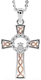 Diamond White Rose Gold Claddagh Celtic Cross Necklace
