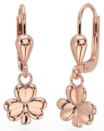 Rose Gold Silver Shamrock Dangle Earrings