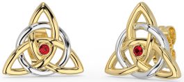 Ruby White Yellow Gold Celtic Trinity Knot Stud Earrings