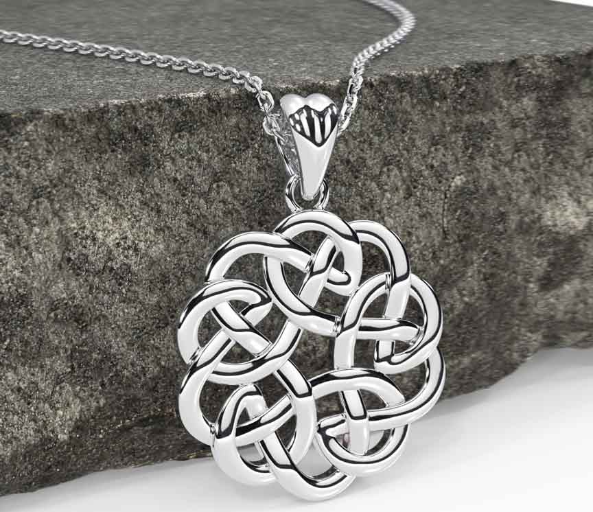 This Celtic Necklace comes in Gold and Sterling Silver. The current selection is made from . Height (excl bail) 20 mm. Width 20 mm.