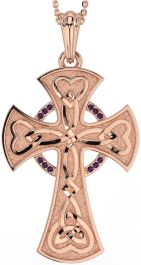Large Alexandrite Rose Gold Silver Celtic Cross Heart Necklace