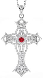 Large Diamond Ruby Silver Celtic Cross Trinity Knot Necklace