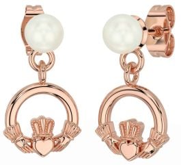 Pearl Rose Gold Silver Claddagh Dangle Earrings