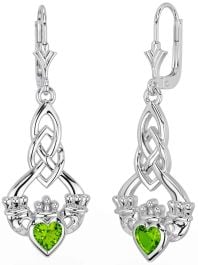 Peridot Silver Celtic Claddagh Dangle Earrings