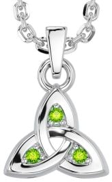 Peridot Silver Celtic Trinity Knot Charm Necklace