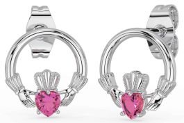 Pink Tourmaline Silver Claddagh Stud Earrings
