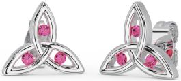 Pink Tourmaline White Gold Celtic Trinity Knot Stud Earrings