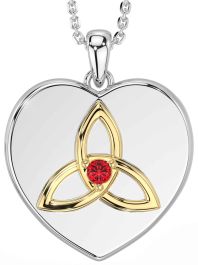 Ruby Gold Silver Celtic Trinity Knot Heart Necklace