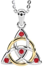 Ruby Gold Silver Celtic Trinity Knot Necklace