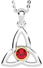 Ruby Gold Silver Celtic Trinity Knot Necklace
