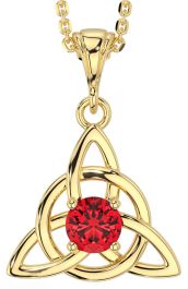 Ruby Gold Silver Celtic Trinity Knot Necklace