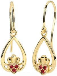 Ruby Gold Silver Claddagh Dangle Earrings