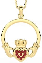 Ruby Gold Silver Claddagh Necklace