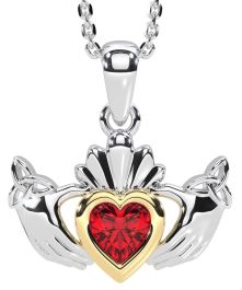 Ruby Gold Silver Claddagh Trinity Knot Necklace