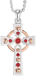 Ruby Rose Gold Silver Celtic Cross Necklace