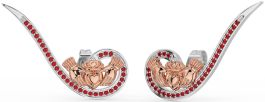 Ruby Rose Gold Silver Claddagh Climber Earrings