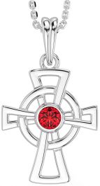 Ruby Silver Celtic Cross Necklace