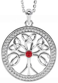 Ruby Silver Celtic Tree of Life Trinity Knot Necklace