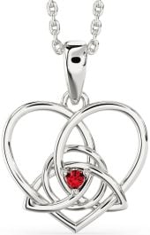 Ruby Silver Celtic Trinity Knot Heart Necklace