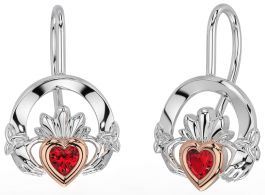 Ruby White Rose Gold Claddagh Celtic Trinity Knot Dangle Earrings