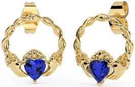Sapphire Gold Silver Celtic Claddagh Trinity Knot Stud Earrings