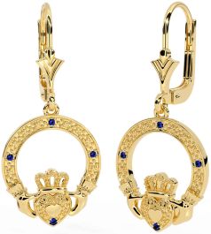 Sapphire Gold Silver Claddagh Dangle Earrings