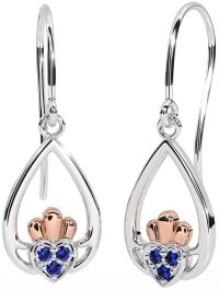 Sapphire Rose Gold Silver Claddagh Dangle Earrings