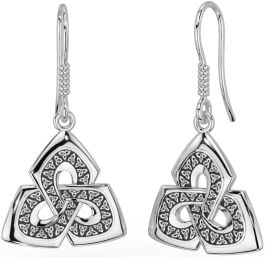 Silver Black Rhodium Celtic Trinity Knot Dangle Earrings
