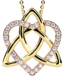 Diamond Rose Yellow Gold Celtic Trinity Knot Heart Necklace