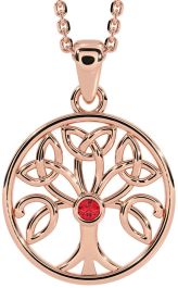 Ruby Rose Gold Silver Celtic Tree of Life Trinity Knot Necklace