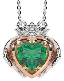 Diamant Smaragd Rose Gold Silber Claddagh Halskette