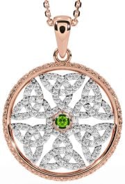 Diamant Peridot Rose Gold keltisch Dreieinigkeit Knoten Halskette