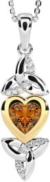 Diamant Citrin Gold Silber keltisch Dreieinigkeit Knoten Herz Halskette