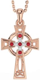 Diamant Rubin Rose Gold Silber keltisch Kreuzen Halskette